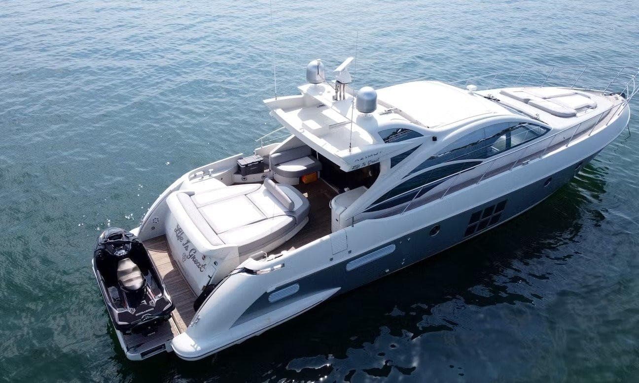 The Azimut 62FT accommodates up to 13 guests. It's a 62-foot vessel perfect for groups.